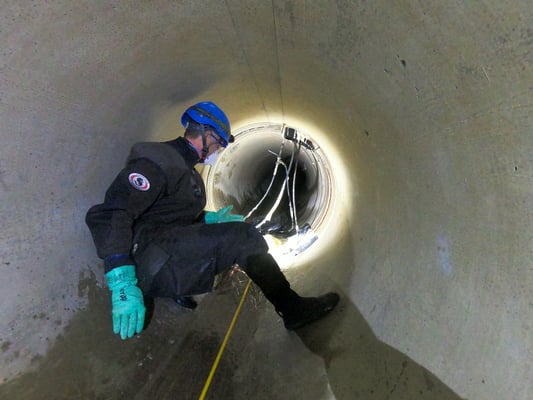 Bei einem aktuellen Projekt stand unser Team vor einer besonderen Herausforderung: Eine undichte Anschlussleitung in einem mit Seewasser eingestauten Microtunnel musste saniert werden.